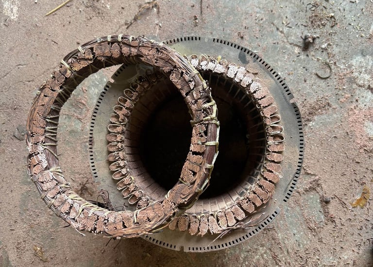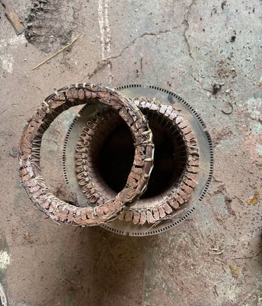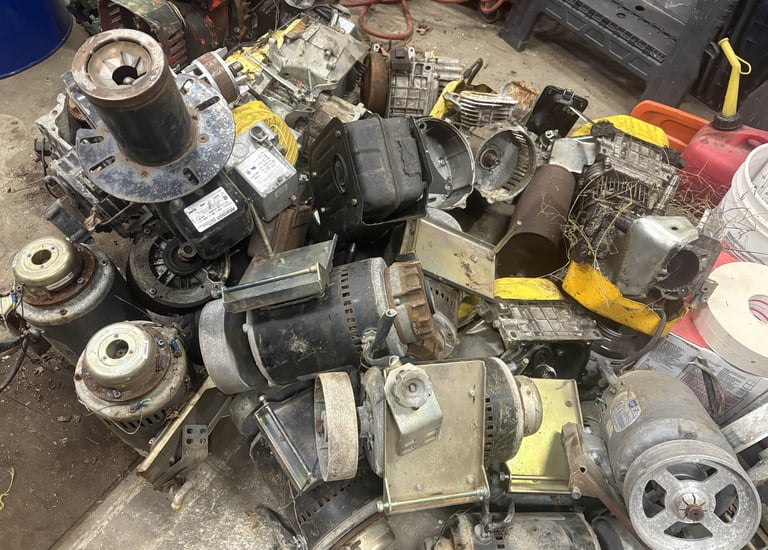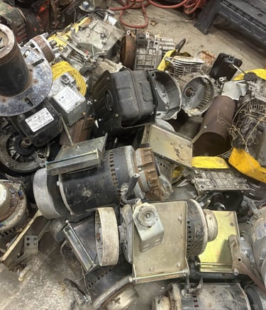 Carefully dismantling motors to reclaim metals.