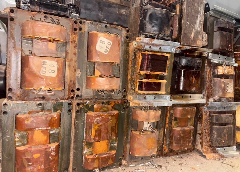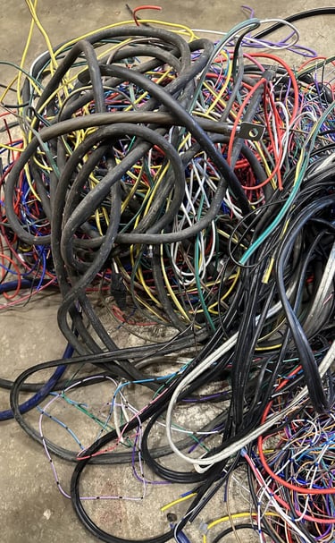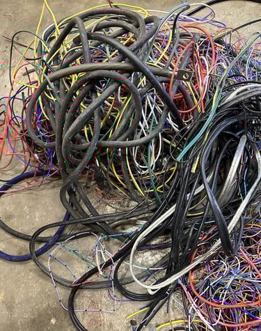 Recycling transformers and stripping wire to bring it one step closer to refinement.